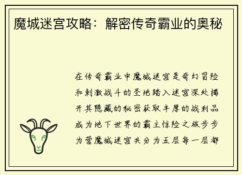 魔兽风云七武器如何回城 引言 魔兽风云七是一款备受玩家喜爱的游戏,其中回城是一个重要的游戏机制。在游戏中,玩家可以通过使用特定的道具或技能回到自己的基地,以便补给、升级或保护自己。本文将从多个方面阐述...